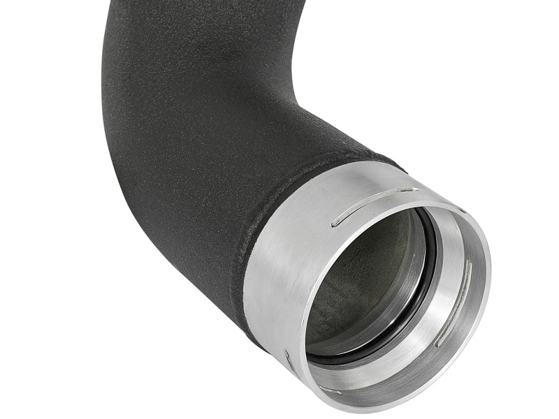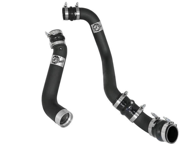 This BladeRunner GT Series Intercooler with tubes represents the next generation of intercoolers by utilizing a 2-5/8in bar and plate core design and larger tubes to outflow stock by 10%.End Tanks: The unique BladeRunner end tanks are constructed out of 3/16in TIG-Welded aluminum plates.2-5/8in Bar and Plate Core Design: The use of the bar and plate core design allows for greater airflow and increased heat dissipation over the stock tube and fin design.Billet Aluminum Inlet/Outlet: This BladeRunner Intercooler uses billet aluminum inlet and outlet for superior strength and durability.TIG-Welded: 100% TIG-Welded by certified craftsmen for race proven strength and durability.Flow and Performance: aFe Power's BladeRunner intercooler tubes are constructed from 3in hot side and 3-1/2in cold side mandrel-bent aluminum tubing for maximum flow. The high-temp wrinkle-black powder-coat insulates the tubes from engine heat and protects them from corrosion. Smooth transition bends decrease turbulence and minimize pressure loss, increasing horsepower, torque and lowering EGT's.Auxiliary Ports: This intercooler features four (4) 1/8 IN NPT ports on the back side of the intercooler for sensors or water methanol injection and two (2) 1/8 IN NPT ports on the bottom for draining condensation or oil build up. In addition, one (1) 1/8in NPT port is provided on each tube.Perfect Fit: Factory mounting locations, quality stainless steel spring-loaded T-Bolt clamps and heavy-duty 5-ply polyester reinforced silicone couplings ensure a secure install. The cold side tube includes a factory-style quick connect with an O-ring seal for a quick and simple install and retains the factory air temp sensor for a hassle-free installation.Custom Appearance: The intercooler tubes are badged with an aluminum laser-cut aFe Power logo.
